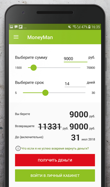 Если вы хотите воспользоваться сервисом или зайти в личный кабинет Moneyman, рекомендуем вам использовать приложение Манимен! Получите полную свободу взаимодействия с сервисом, который всегда под рукой.